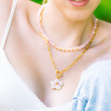 Sunset Beach Necklace, Gold Seashell Gemstone Necklace