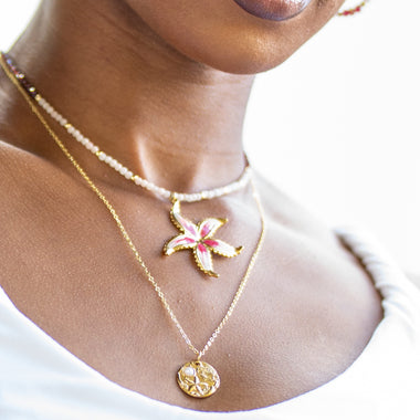 Sunset Beach Necklace, Gold Seashell Gemstone Necklace