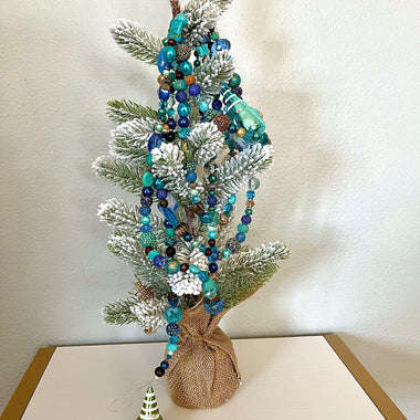 Blue Luxury Beaded Holiday Gnome Garland, 9FT Blue Beaded Holiday Garland