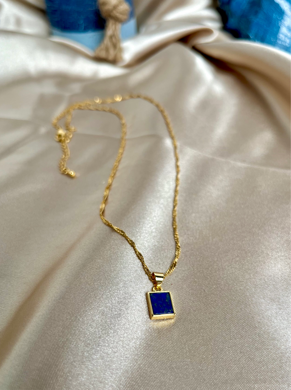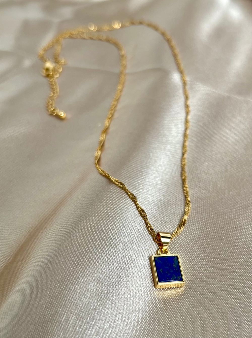 This stunning dainty Lapis Lazuli square bezel pendant necklace is a well favored piece for a reason. It is so minimalistic yet still gives a statement and looks amazing dressed up or down and can be unisex depending on the chain style.