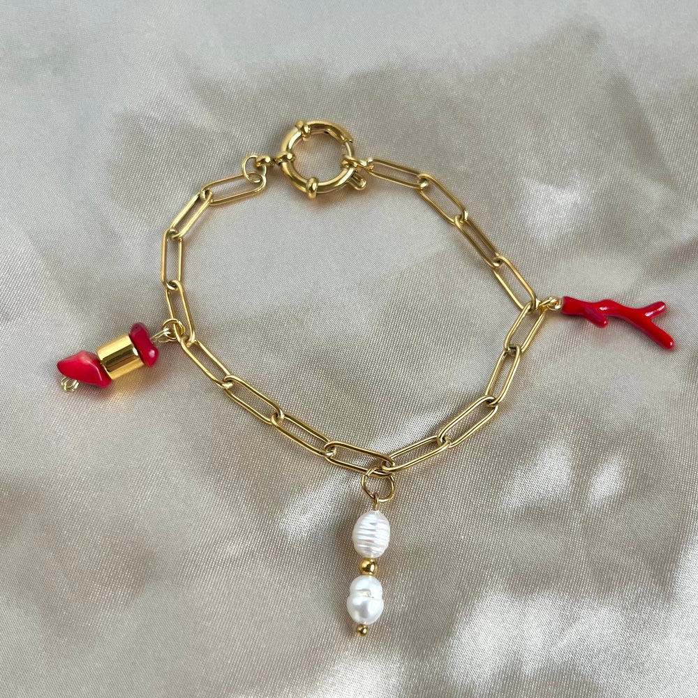 Manarola Bracelet, Freshwater Pearl Coral Charm Bracelet