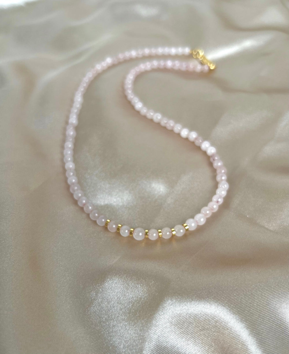 Women’s Pink Gemstone Layering Necklace, Gold Filled Rose Quartz beaded Necklace
